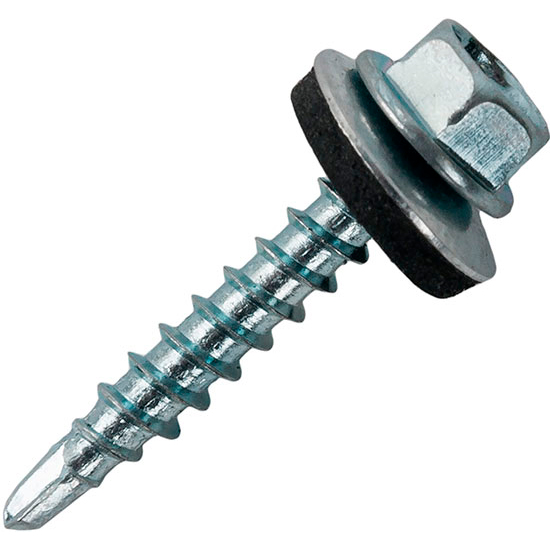 Саморез кровельный 6,3х25 мм с увеличенным сверлом РТ-5 15 мм и EPDM шайбой оцинкованный