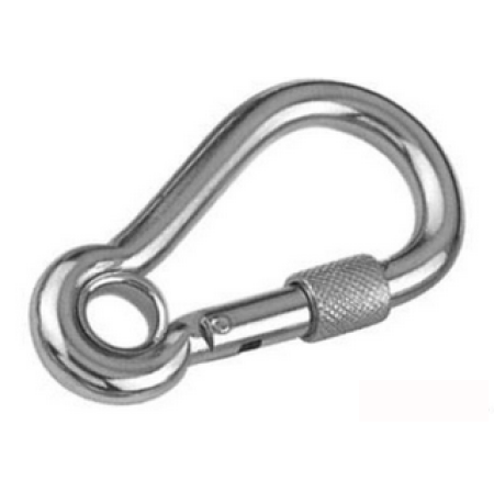 Карабин пружинный с резьбовой предохранительной втулкой и кольцом 6х60 АРТ 8232 нержавеющая сталь А4
